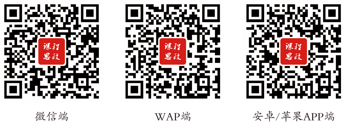 移动端使用方法:通过手机扫描下方二维码,关注微信公众号使用“课程思政”微信端,或下载APP使用。请注意:使用移动端时,须先在校园网IP范围内注册账户(该账户将自动升级为不限IP的移动端账户),并以该账户登录移动端。